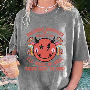 Maturelion Halloween i'll heal in hell right next to you DTG Printing Washed Cotton T-Shirt