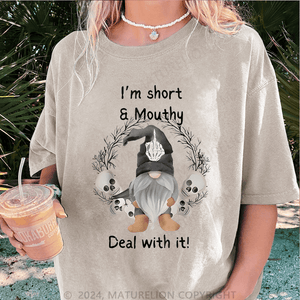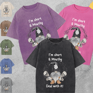 Maturelion Halloween I'm Short & Mouthy Printed Halloween Casual DTG Printing Washed Cotton T-Shirt