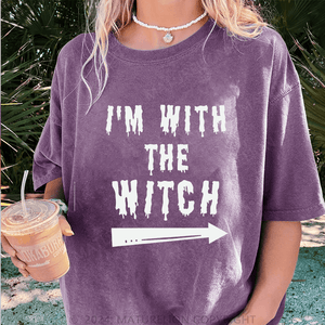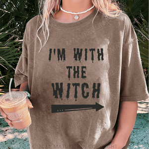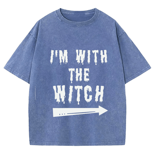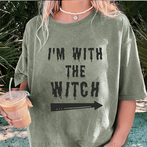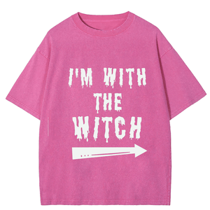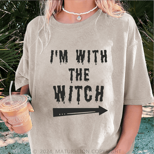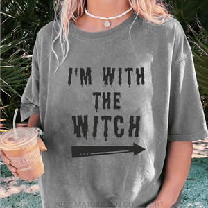 Maturelion Halloween I'm With The Witch DTG Printing Washed Cotton T-Shirt