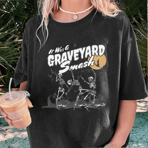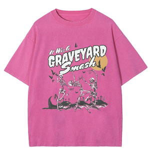Maturelion Halloween Its Was A Graveyard Smash Skeleton Halloween DTG Printing Washed Cotton T-Shirt