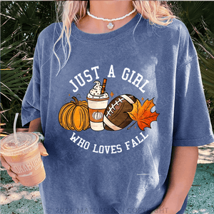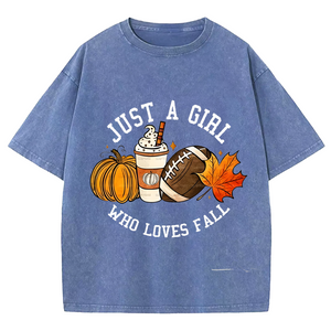 Maturelion Halloween Just A Girl Who Loves Fall DTG Printing Washed Cotton T-Shirt