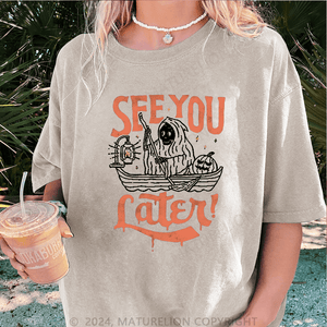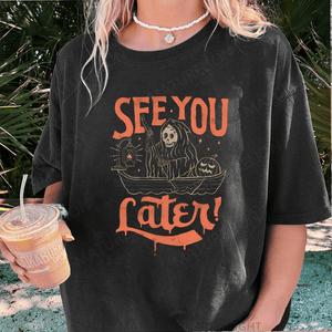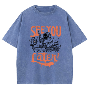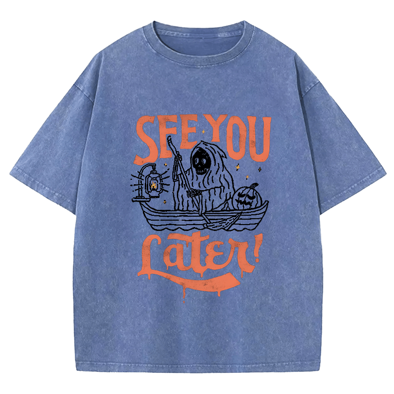 Maturelion Halloween See You Fater Funny DTG Printing Washed Cotton T-Shirt