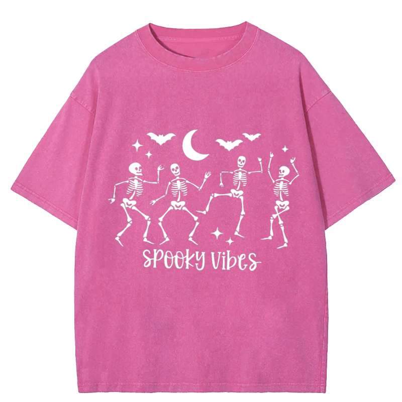 Maturelion Halloween Spooky Vibes Halloween Funny DTG Printing Washed Cotton T-Shirt