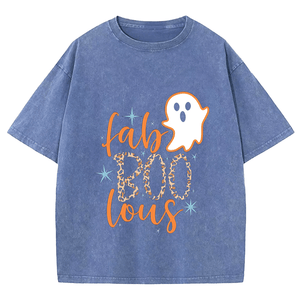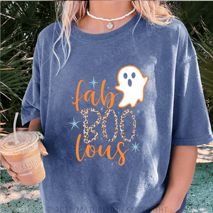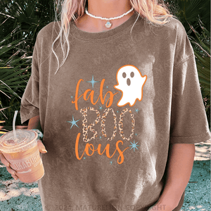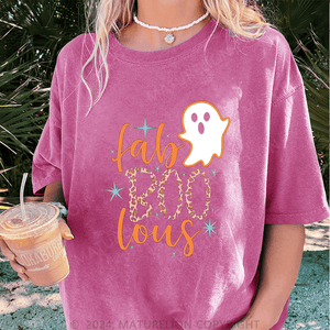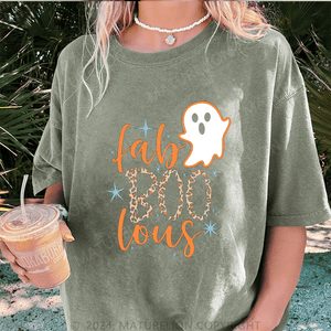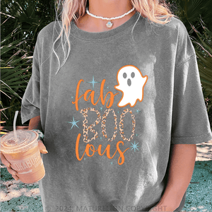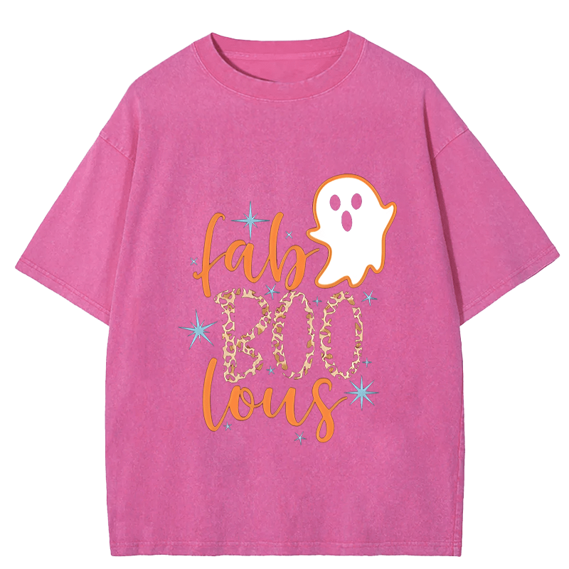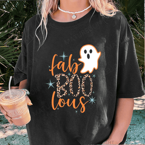 Maturelion Halloween Super Cute Fab BOO Lous, Leopard Halloween DTG Printing Washed Cotton T-Shirt