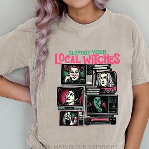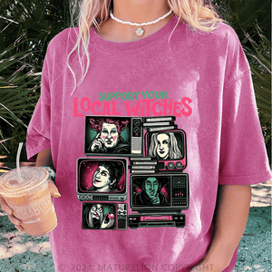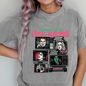 Maturelion Halloween Support Your Local DTG Printing Washed Cotton T-Shirt