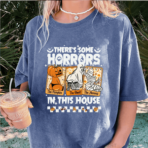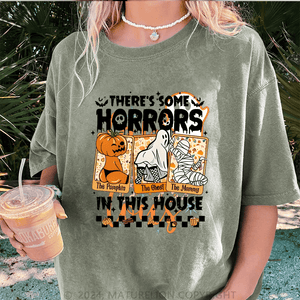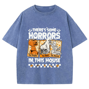 Maturelion Halloween There's Some Horrors In The House DTG Printing Washed Cotton T-Shirt