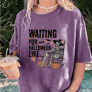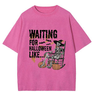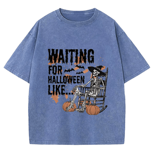 Maturelion Halloween Waiting For Halloween Like DTG Printing Washed Cotton T-Shirt