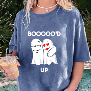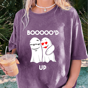 Maturelion Women's T-Shirt Cute Boo'd Up and Loving It Spooky Cute Couple Vibes Ghostly halloween Cotton T-Shirt