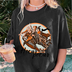 Maturelion Women's T-Shirt Retro Halloween Magic – Sanderson hallowen Sisters,Hocus halloween Cotton T-Shirt
