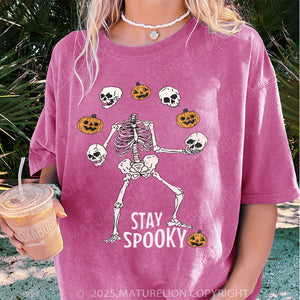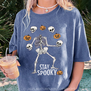 Maturelion Women's T-shirt Stay Spooky Skeleton DTG Washed T-shirt