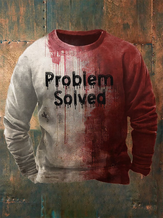 Men's Bloody Problem Solved Halloween Print Crew Neck Sweatshirt