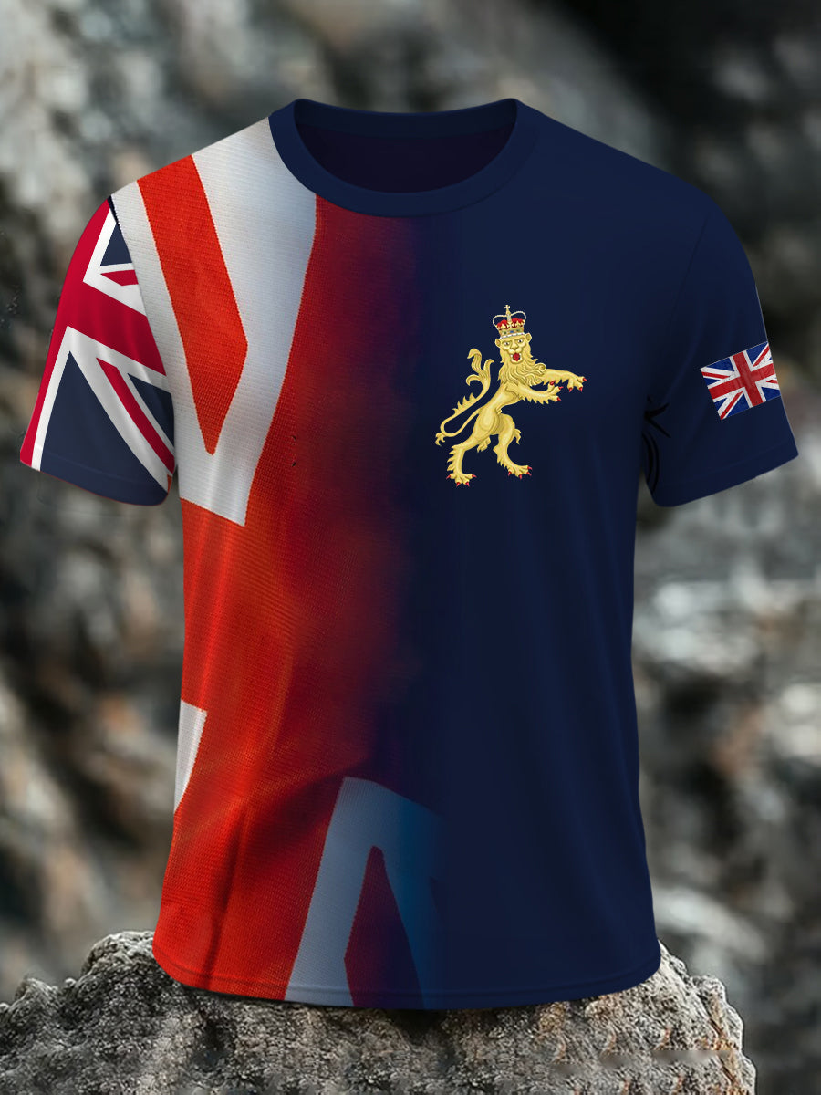 Men's British Flag Lion with Union Jack Print Casual Short Sleeve Tee