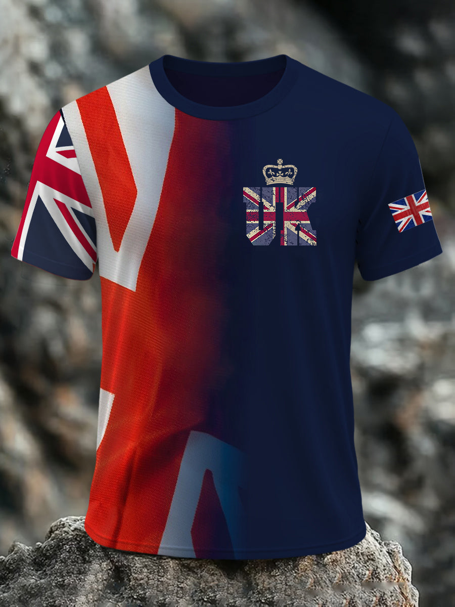 Men's British Flag Lion with Union Jack Print Casual Short Sleeve Tee