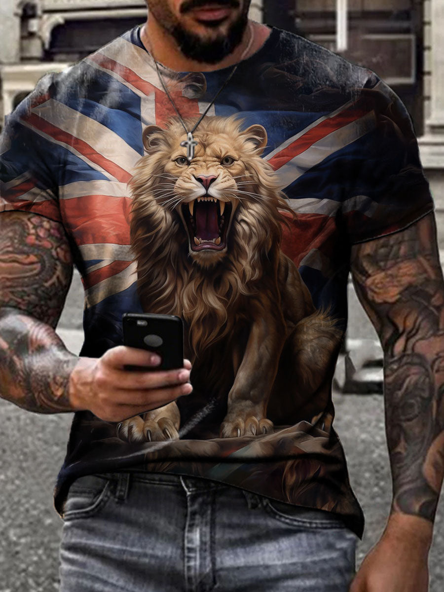 Men's British Lion Cotton Short-Sleeved T-shirt