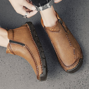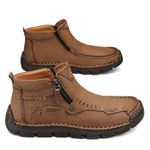 (⏰Last Day 70% OFF🔥)Men's Top-Quality Motorcycle Boots Hand-Stitched Genuine Leather Boots-Wide Toe, Waterproof, Anti-Slip, Anti-Sprain,Suitable for Work, Driving, Hiking
