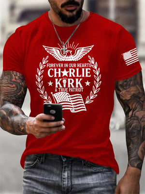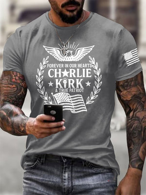 Men's Forever In Our Hearts A True Patriot Print Round Neck T-Shirt