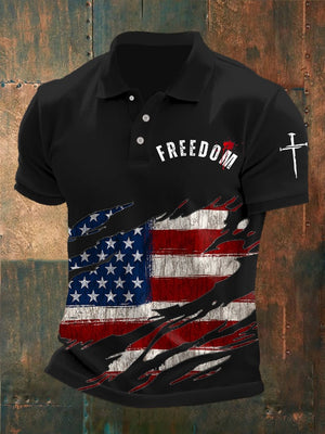 Men's Freedom American Flag Casual Printed Polo Shirt