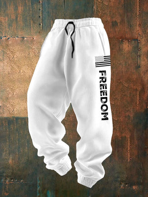 Men's Freedom Print Textured Casual Loose Sweatpants