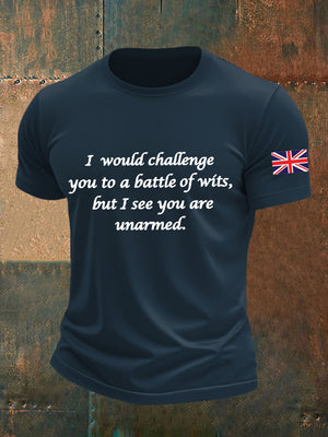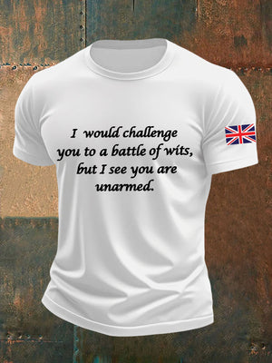 Men's Funny Quote English Flag Print Casual Cotton Short Sleeve T-shirt