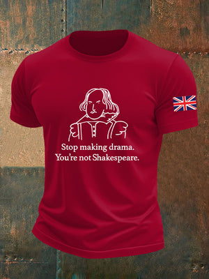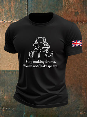Men's Funny Quote "Stop Making Drama You're Not Shakespeare" English Flag Print Casual Cotton Short Sleeve T-shirt