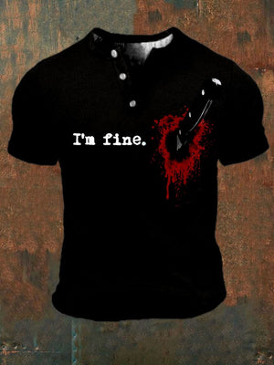 Men's I‘m Fine Printed Button Neck Short Sleeve T-Shirt