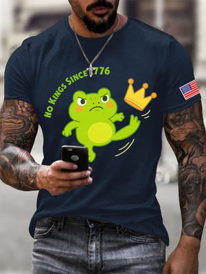 Men's No Kings Frog Printed Round Neck T-Shirt
