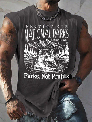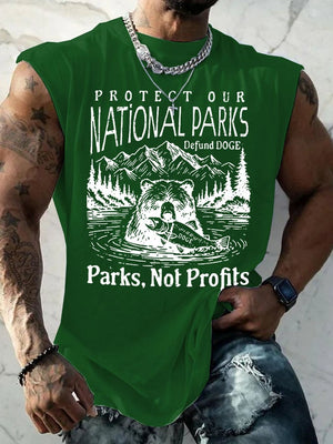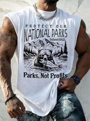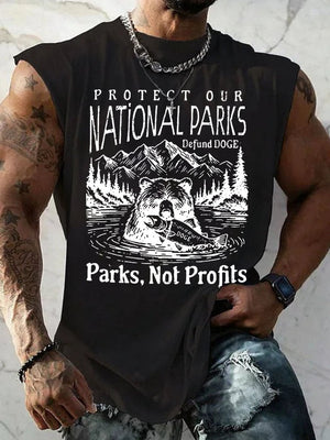 Men's Protect Our National Parks Print Round Neck Tank Top