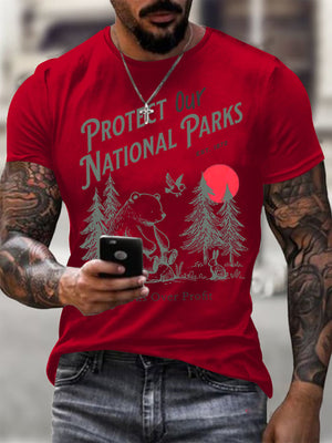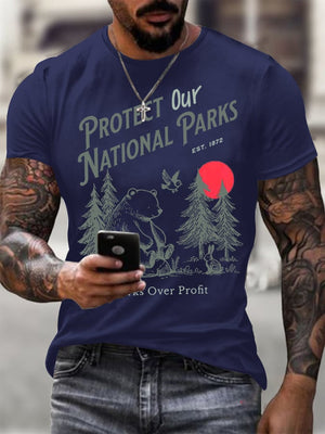 Men's Protect Our National Parks Printed Round Neck T-Shirt