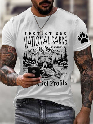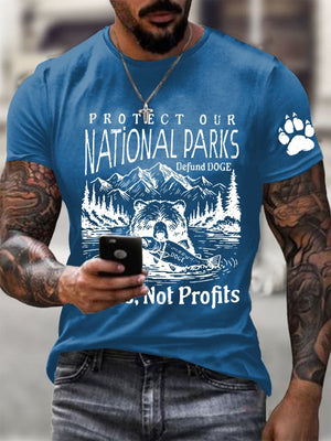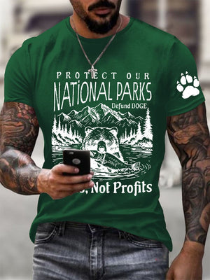 Men's Protect Our National Parks Printed Round Neck T-Shirt