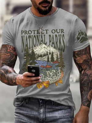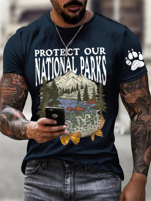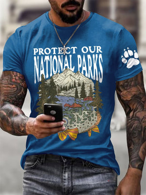 Men's Protect Our National Parks Printed Round Neck T-Shirt