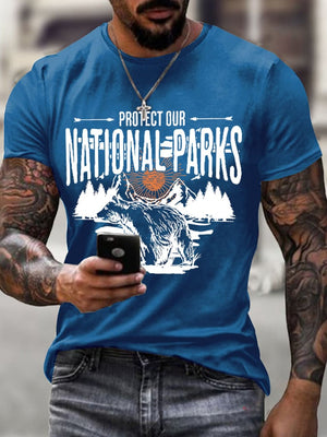 Men's Protect Our National Parks Printed Round Neck T-Shirt