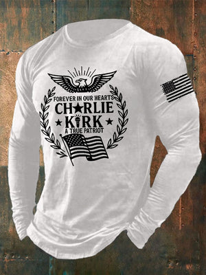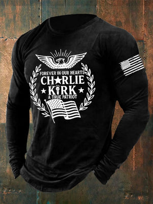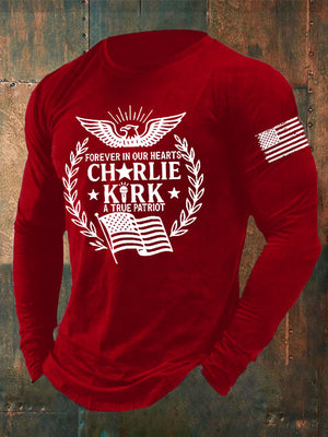 Men's Retro Forever In Our Hearts A True Patriot Print T-Shirt