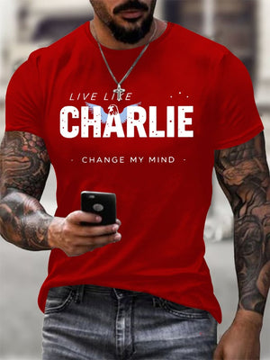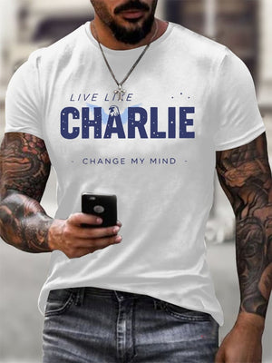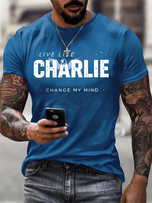 Men's Retro Live Like Charlie Change My Mind Print T-Shirt