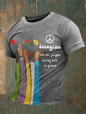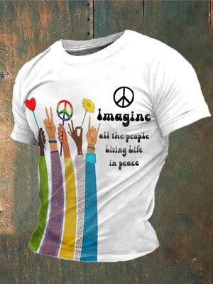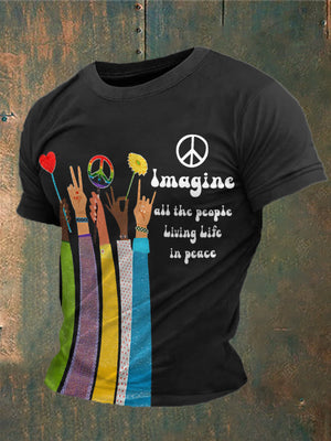 Men's Retro Music Band Imagine All The People Living Life In Peace Printed T-shirt