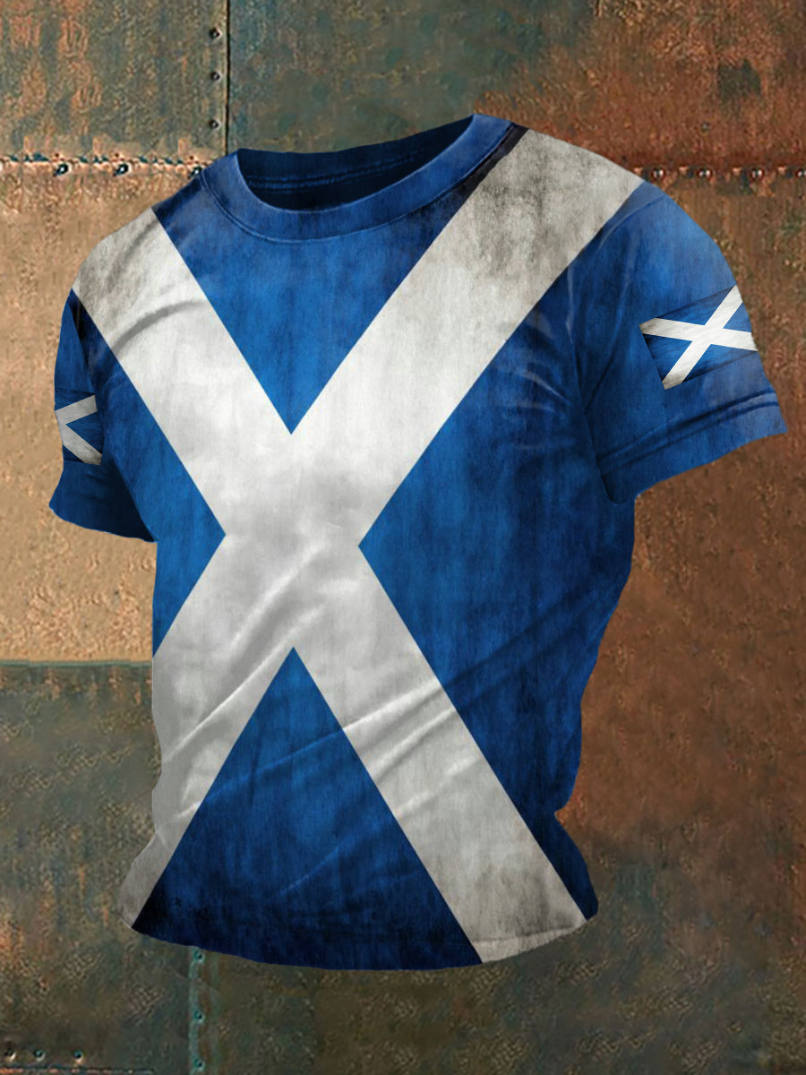 Men's Retro Scottish Flag Print Casual Tee