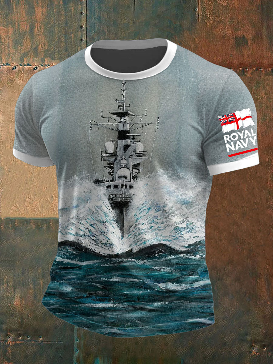 Men's Royal Navy Veteran Battleship Printed T-shirt