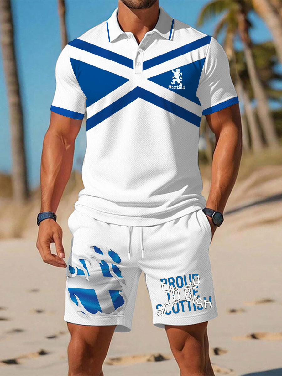 Home Men's Scottish Flag Printed Short Sleeve Sets
