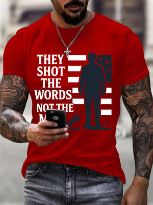 Men's They Shot The Words Not The Man Printed Round Neck T-Shirt