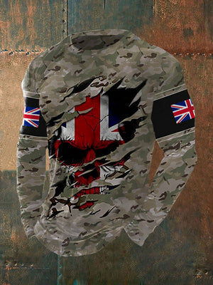 Men's UK Flag Camouflage Skull Print Casual Long-Sleeve T-Shirt
