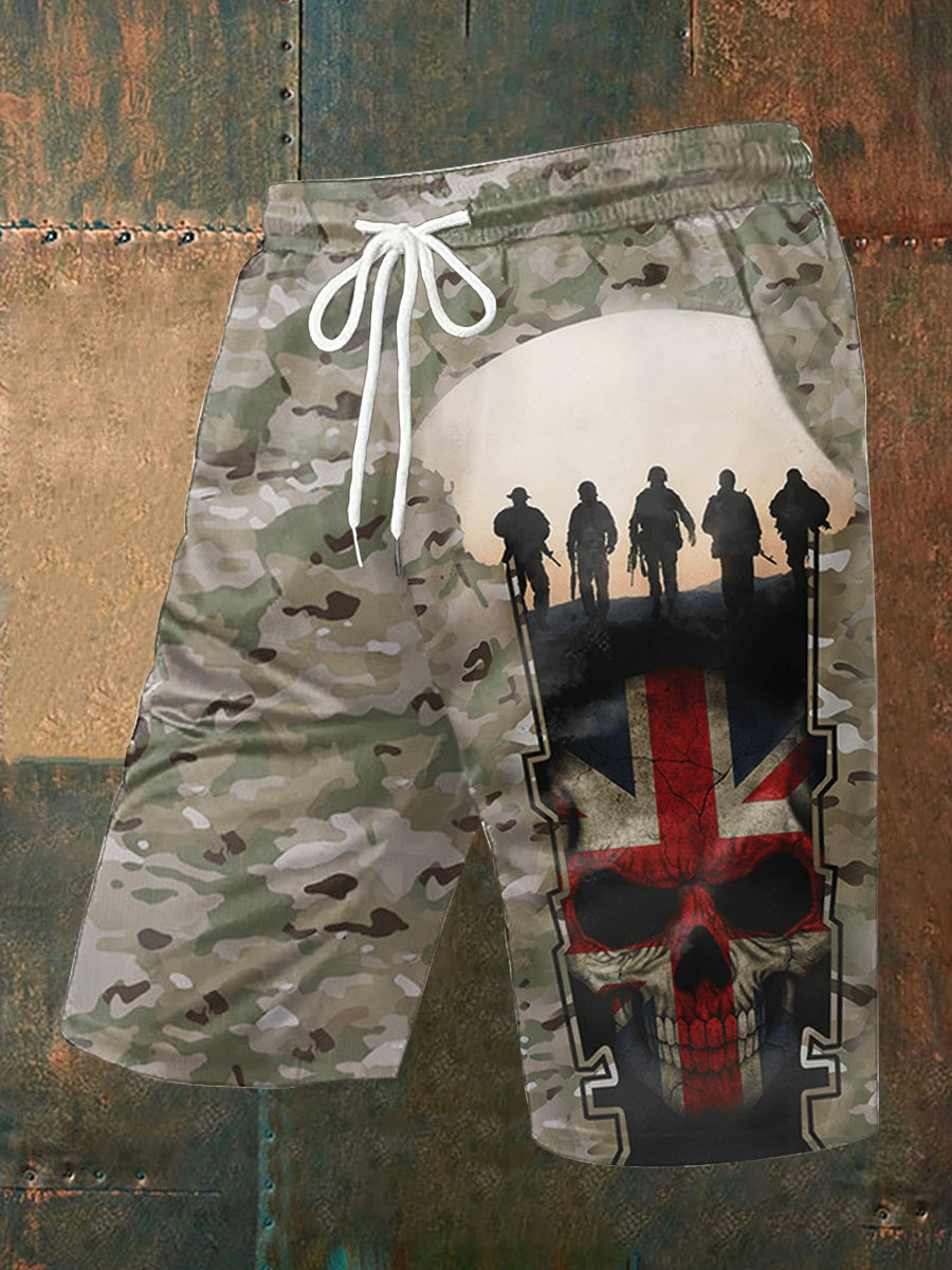 Men's UK Flag Camouflage Skull Print Casual Shorts