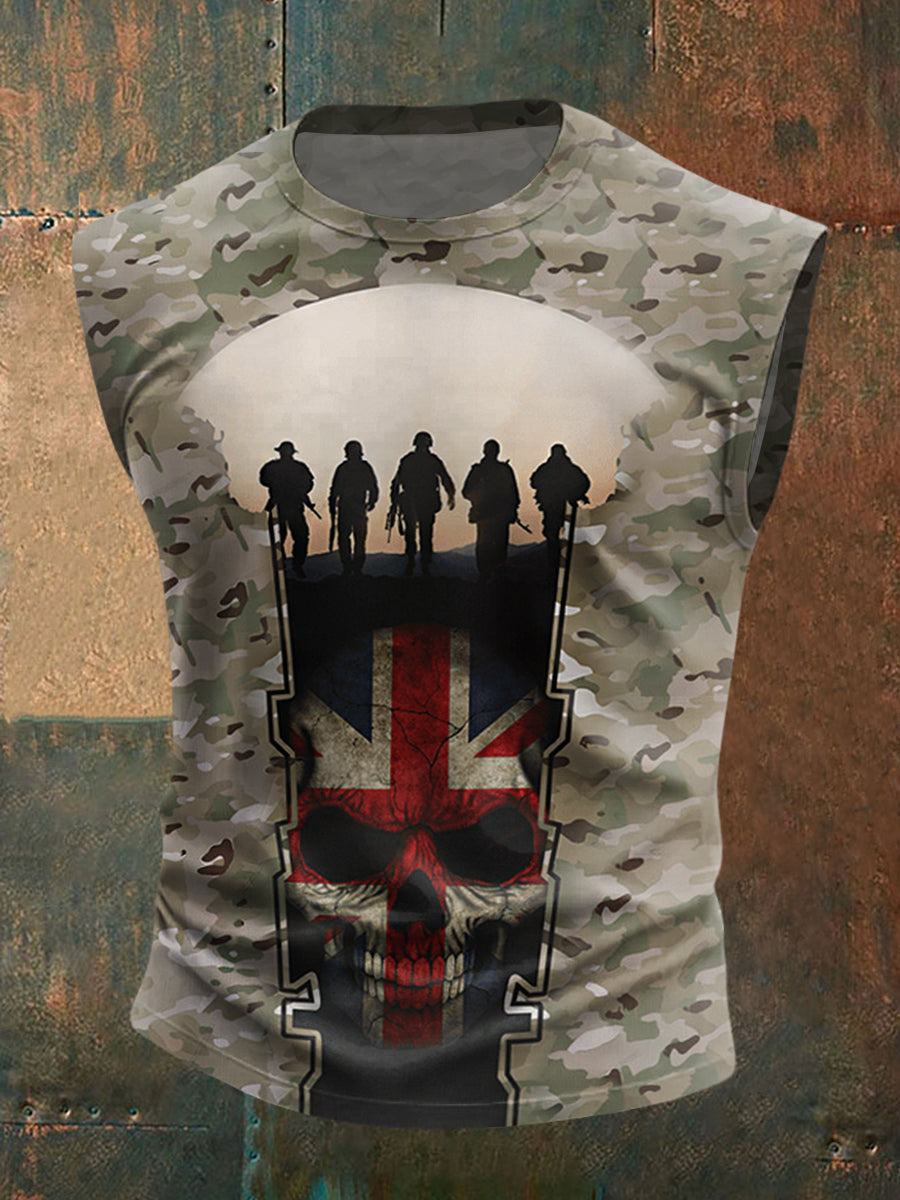 Men's UK Flag Camouflage Skull Print Casual Tank Top