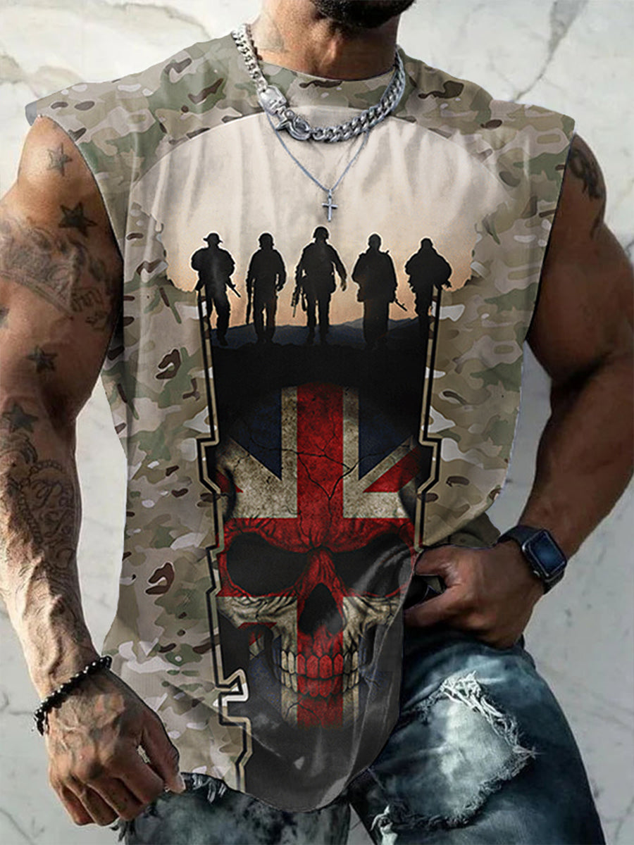 Men's UK Flag Camouflage Skull Print Casual Tank Top