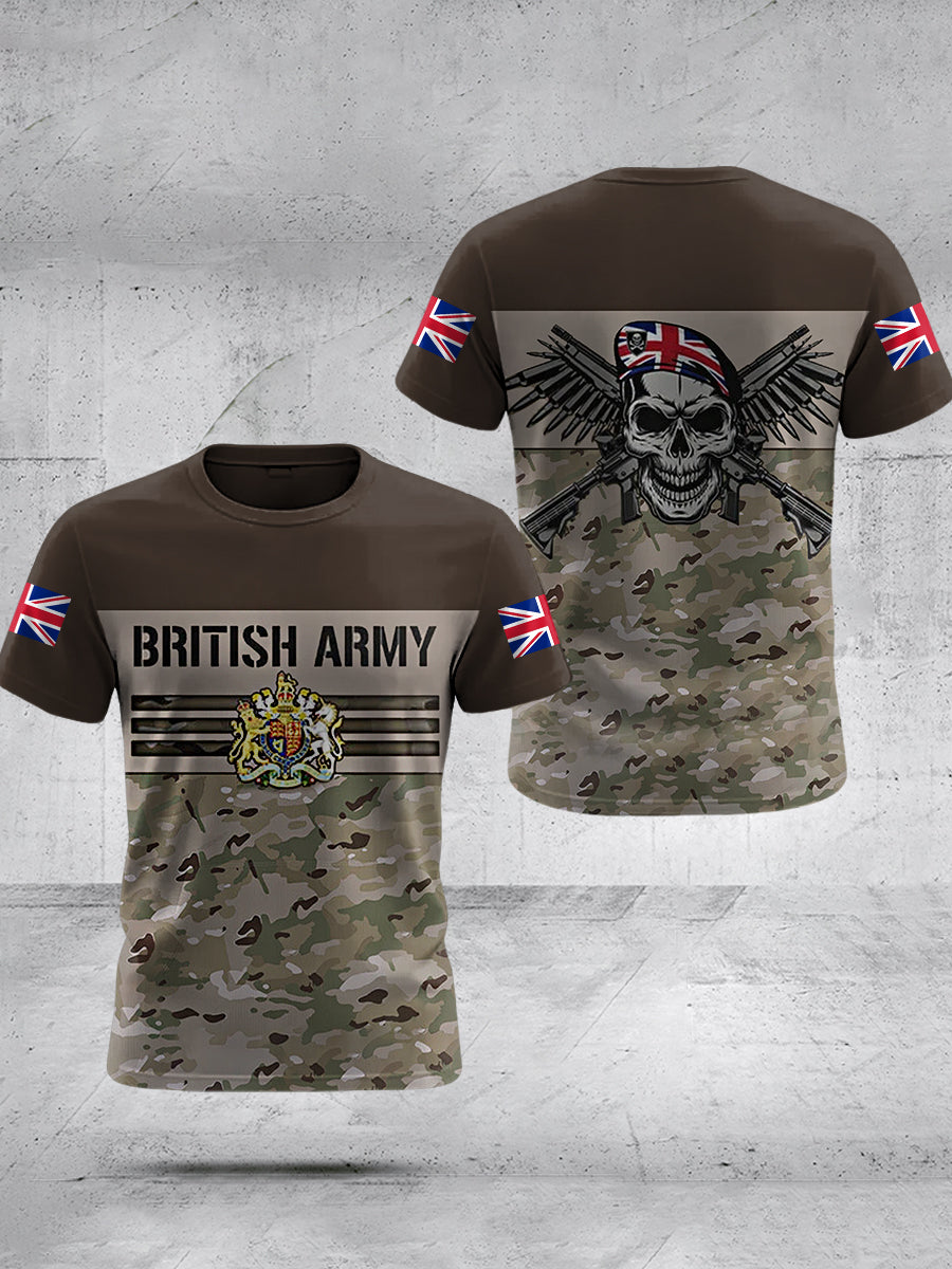 Men's UK Flag Camouflage Skull Print Casual Tee