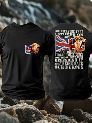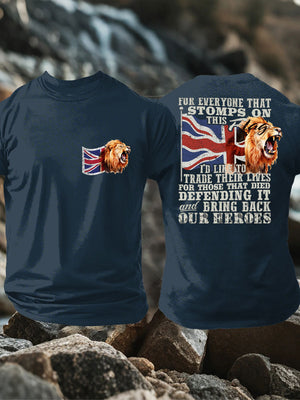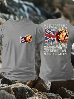 Men's UK Flag Lion Patriotic Printed T-shirt
