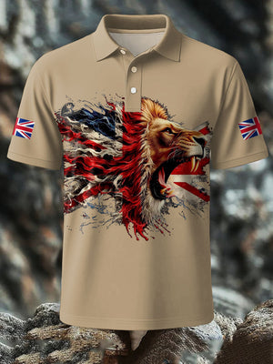 Men's UK Flag Lion Printed Casual Tops