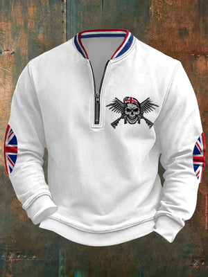 Men's UK Flag Skull Veteran Print Casual Sweatshirt