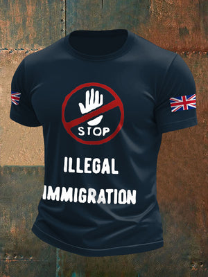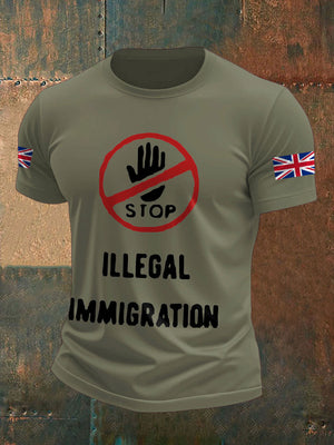 Men's UK Flag Stop Illegal Immigration Printed T-shirt