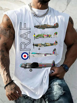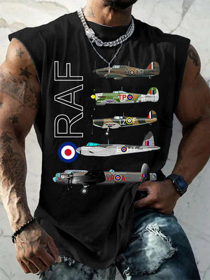Men's Vintage Spitfire Lancaster Typhoon Hurricane Mosquito Print Casual Tank Top