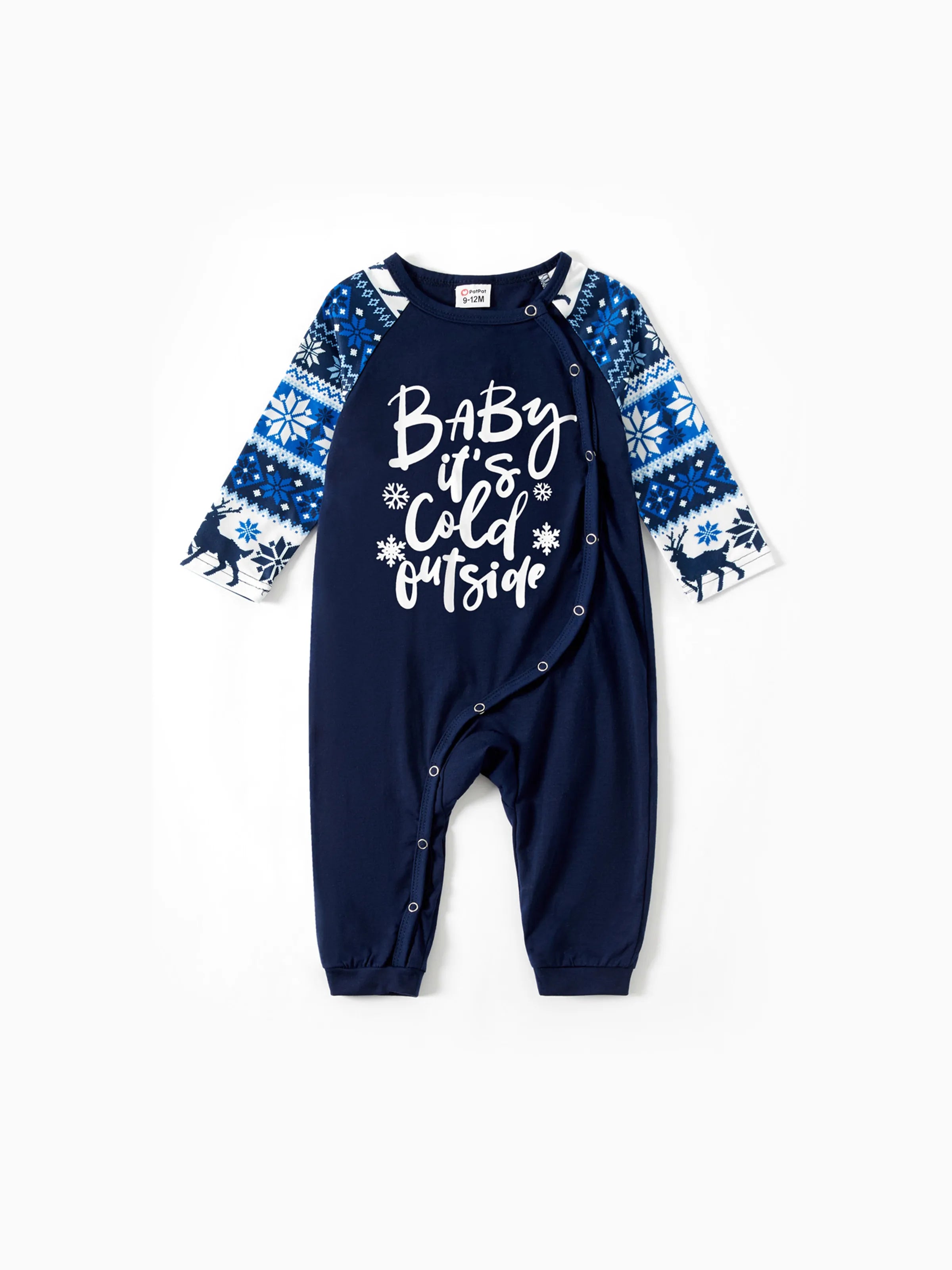 Mosaic Family Matching Letter Top Reindeer Pants Christmas Pajamas Sets with Christmas Socks Deep Blue