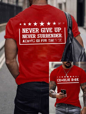 Never Give Up, Never Surrender, Always Pursue Victory Men'S Printed Short-Sleeved T-Shirt